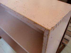 古いペイントがかわいい収納棚。