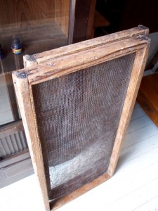 壁に掛けて飾ってもおもしろい木枠のアミ。