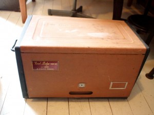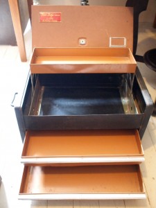 ネームプレートが付いたツールボックス。
