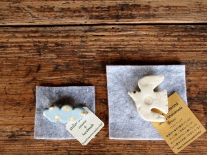 「雲のブローチ」 「しあわせの鳥ブローチ」