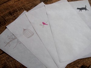 透ける絵柄の組み合わせによって、何通りものストーリーが生まれるレターセット。