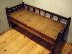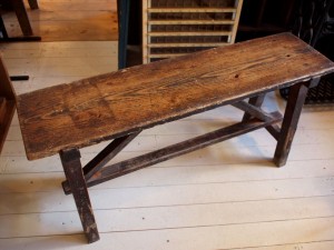 使いこまれた風合いがかわいいベンチ。