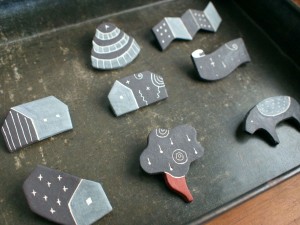 陶芸家小林陽子さんとのコラボシリーズ「hocora」のブローチ。