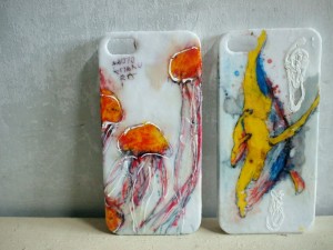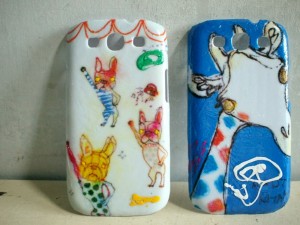 個展期間限定のデコパージュ技法のスマートフォンケースたちは、
