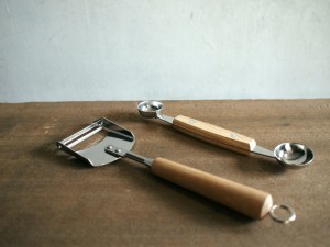 木柄のピーラーと野菜くり抜き。
