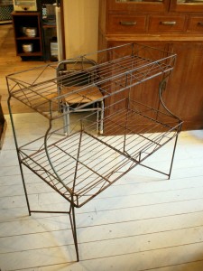 こちらは、ちょっぴりめずらしいデザインの小ぶりなアイアンの棚。