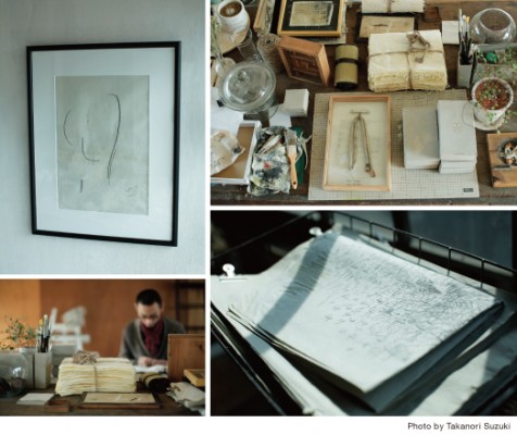 紙や・布などを使用した平面や立体の作品、ドローイングなどの販売、紙もの雑貨の販売。