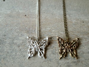 シルバーと真鍮の蝶のネックレス。