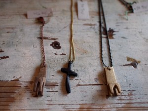 いろいろな素材を使いアクセサリーやオブジェをつくられるタナカさん。