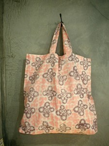 こちらは、新たに個展用に届けてくださった Ajisai柄のバッグ。