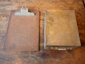 古いバインダーとブリキ缶。
