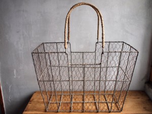 キレイなカタチの錆びたアイアンのカゴ。
