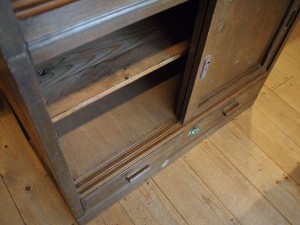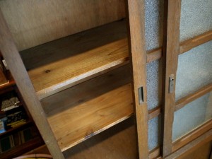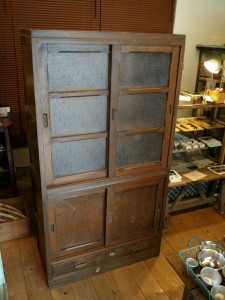 こちらは、ダイヤガラスがかわいい食器棚。