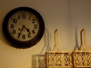 かわいい丸型の掛け時計。
