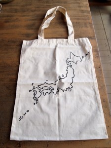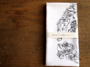 ユニークなポーズでかたどられた日本地図の柄のてぬぐいです。